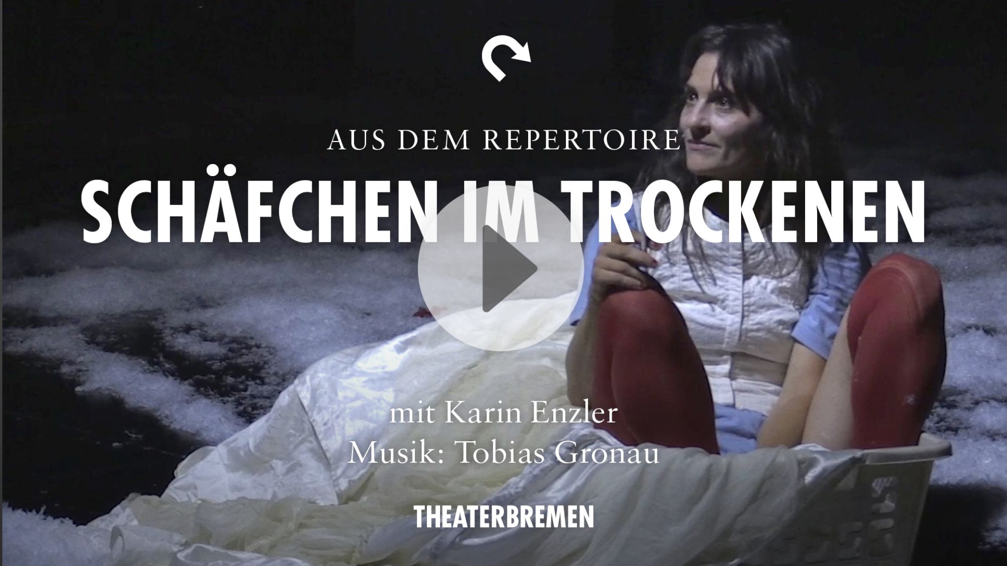 Den ersten Einblick ins Repertoire geben wir in die Produktion Schäfchen im Trockenen. Schauspielerin Karin Enzler monologisiert als Resi nahezu zwei kraftvolle Stunden und lässt die Sprache von Buchmessepreisträgerin Anke Stelling sogar im hiergezeigten Song in neuen Klängen ertönen.