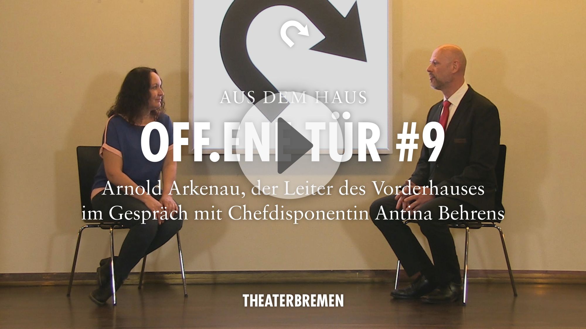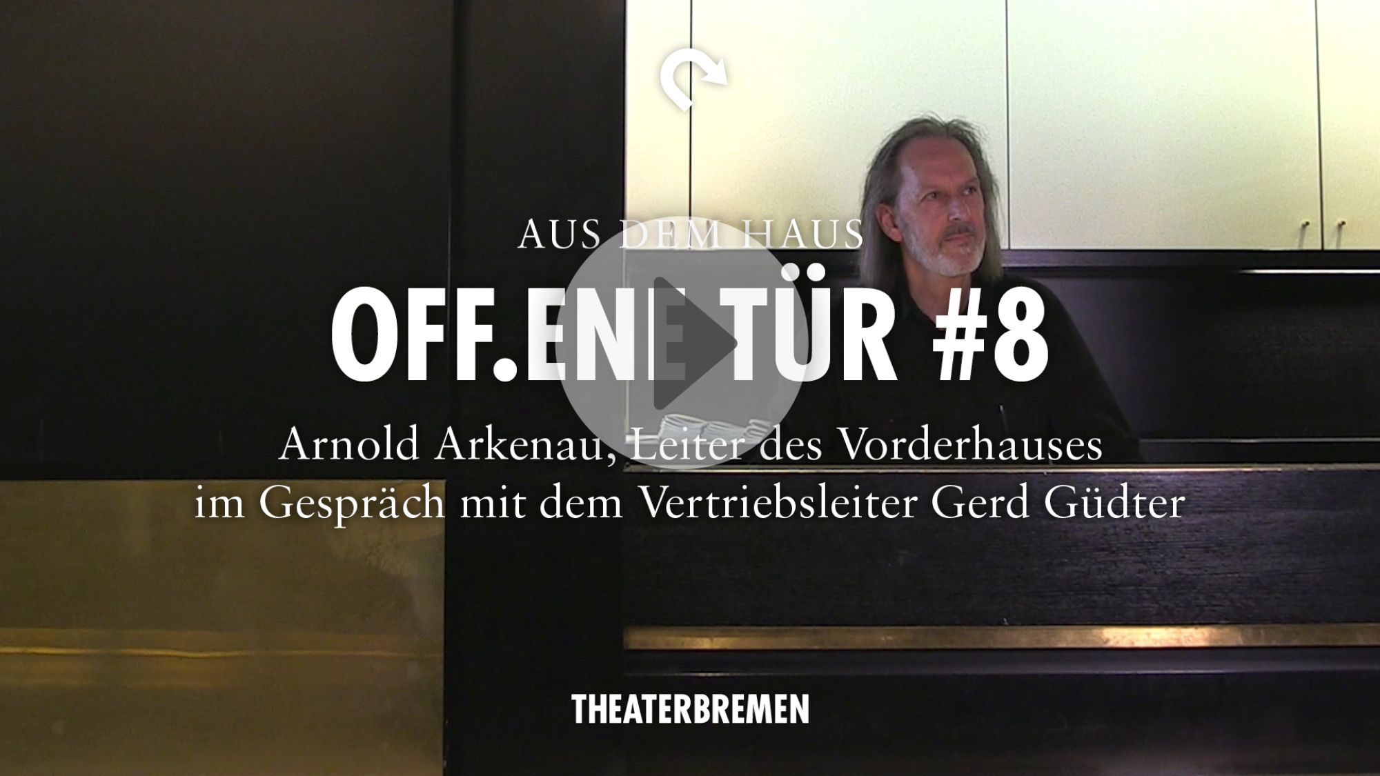 In der letzten Episode der Serie OFF.ENE TÜR wird der Interviewer selbst zum Interviewten: Arnold Arkenau, Leiter des Vorderhauses, wird von Chefdisponentin Antina Behrens ausgefragt – und nun wissen wir auch, wer der Stühle-schiebende Mann aus dem Vorspann ist.