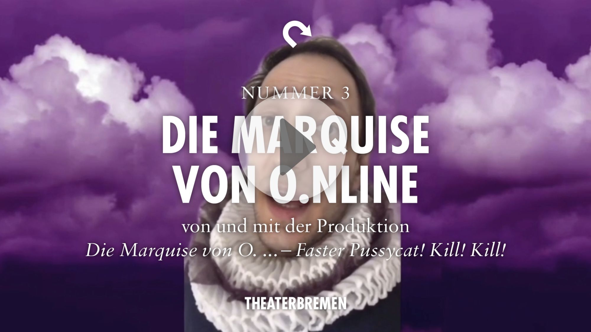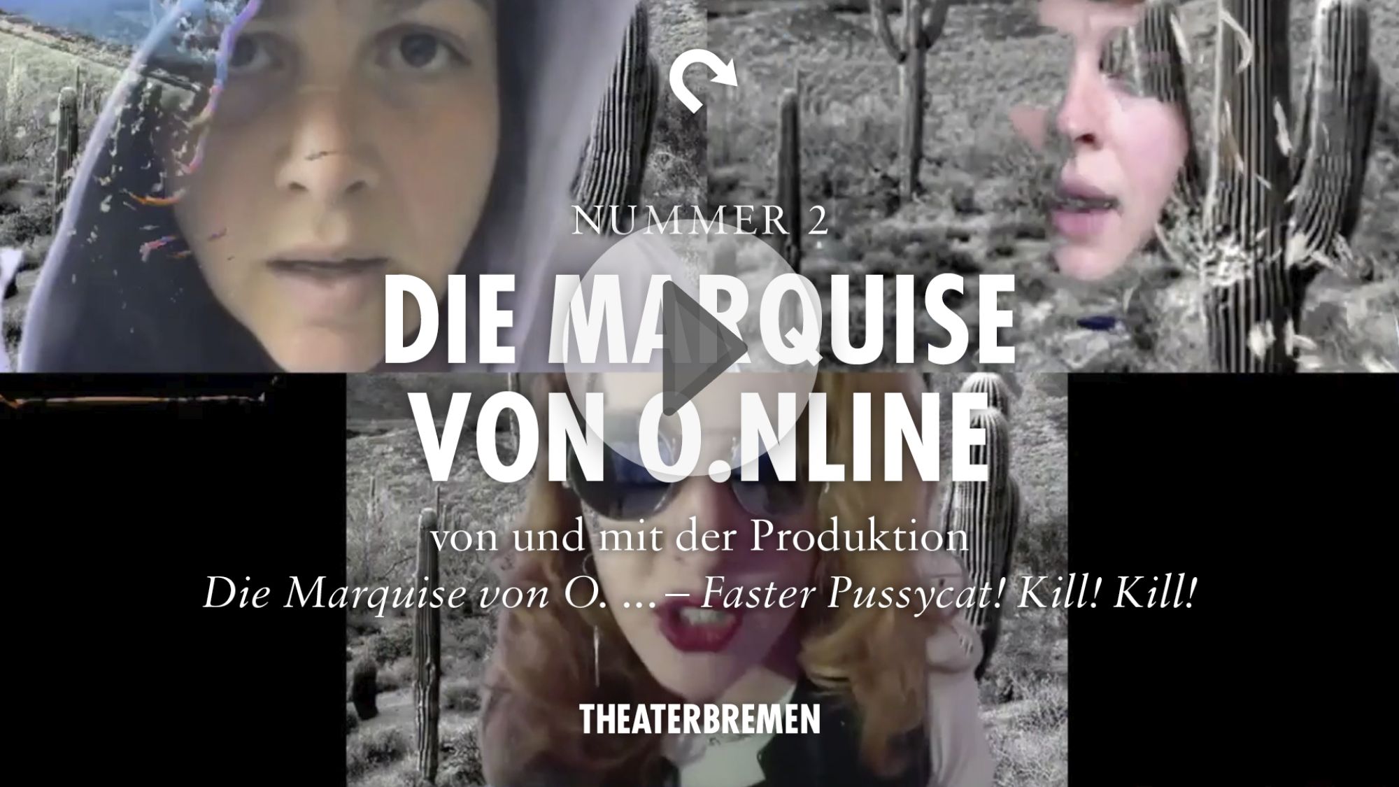 Am 30. April hätte eigentlich die Uraufführung von Die Marquise von O … — Faster Pussycat! Kill! Kill! von Enis Maci in der Regie von Elsa-Sophie Jach stattfinden sollen. Um die Wartezeit bis zum neuen Premierentermin zu verkürzen, hat sich die Produktion entschieden, in der Zwischenzeit auf ein anderes Medium umzusteigen.