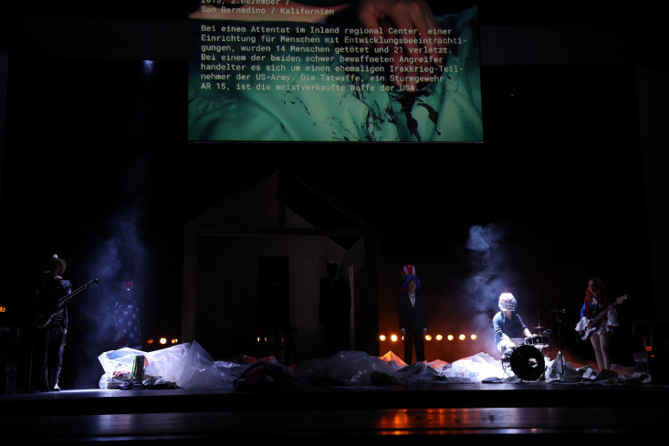 „Kriegstraumata, soziale Ungleichheit, Geschlechterrollen-Klischees und immer wieder Liebe; Generationenkonflikte, Gigantismus und Finanzkrise; Terror, Konsumwahn, Identitätsverlust und Artensterben. Zur Verfremdung dessen, was wir täglich in den Medien verfolgen können, wählte Kater einen uns ebenso entfernten wie bekannten Ort, nämlich Amerika (bzw. America). Aus dem Stoff seines Alter Egos machte Regisseur Armin Petras nun am Theater Bremen einen mit viel Sinn für theatrale Bildwirkung aufgetunten Theaterabend.“ (Martina Burandt, Die deutsche Bühne online, 27. September 2020)