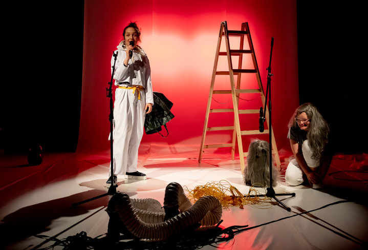 Ein Drittel aller Ehen werden wieder geschieden, zwanzig Prozent aller Familien sind alleinerziehend, Singles gibt es wie Sand am Meer und trotzdem glauben alle noch an die große Macht des Paar-Seins. Die All-In-Performance ›Paare sind feindliche Inseln – Rette sich wer kann!‹ geht diesem Narrativ mit viel Humor und feministischer Lupe auf den Grund. Allerdings ist das Objekt der Begierde hier tatsächlich ein Objekt. ›Glaubt ihr, ich habe eine Chance bei ihr?‹, fragt die Performerin das Publikum und schielt verliebt zu einer Kugelhantel. PINSKER+BERNHARDT entwirren den zugleich hoch theoretischen und alltäglichen Diskurs von Objekt und Paarbeziehung für ein junges Publikum. Im Zentrum steht die Frage, was es eigentlich bedeutet, zu zweit zu sein. Denn Paar-Sein kann sich schön anfühlen und schrecklich zugleich, es kann abhängig machen und frei, es kann ausschließen und verbinden. Und nicht zuletzt ist das Paar-Sein auch politisch. Wie ist das Konzept von Liebe und Zweisamkeit in die Gesellschaft eingebettet, in der ich lebe? Welche Funktion erfüllt es darin? Wen und wie soll ich lieben? Und wie viele?