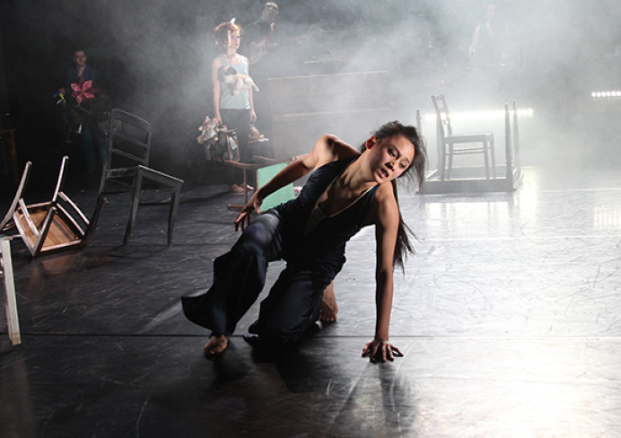 „Zwei Szenen sind mir unter die Haut gegangen: In der einen Szene tanzen alle in einer Formation dieselben schnellen, rhythmischen Tanzschritte, wie man sie aus dem Stepptanz kennt. Das war Tanz in höchster Vollendung und Harmonie und sah wunderschön aus. Ganz anders die zweite Szene, die ich hier beschreiben möchte: der extrem aggressive und energiegeladene Auftritt einer Frau, atemberaubend getanzt von Marie-Laure Fiaux: Sie drängt die anderen von ihren Stühlen, sie beißt und kratzt, sie reißt sich sogar ihr Kleid und ihren BH vom Leib. Die anderen Akteure schauen ihr mit entsetzten Blicken zu, tun aber nichts. Sie ist die Außenseiterin, das enfant terrible – das war so heftig, dass mir fast der Atem stockte.“