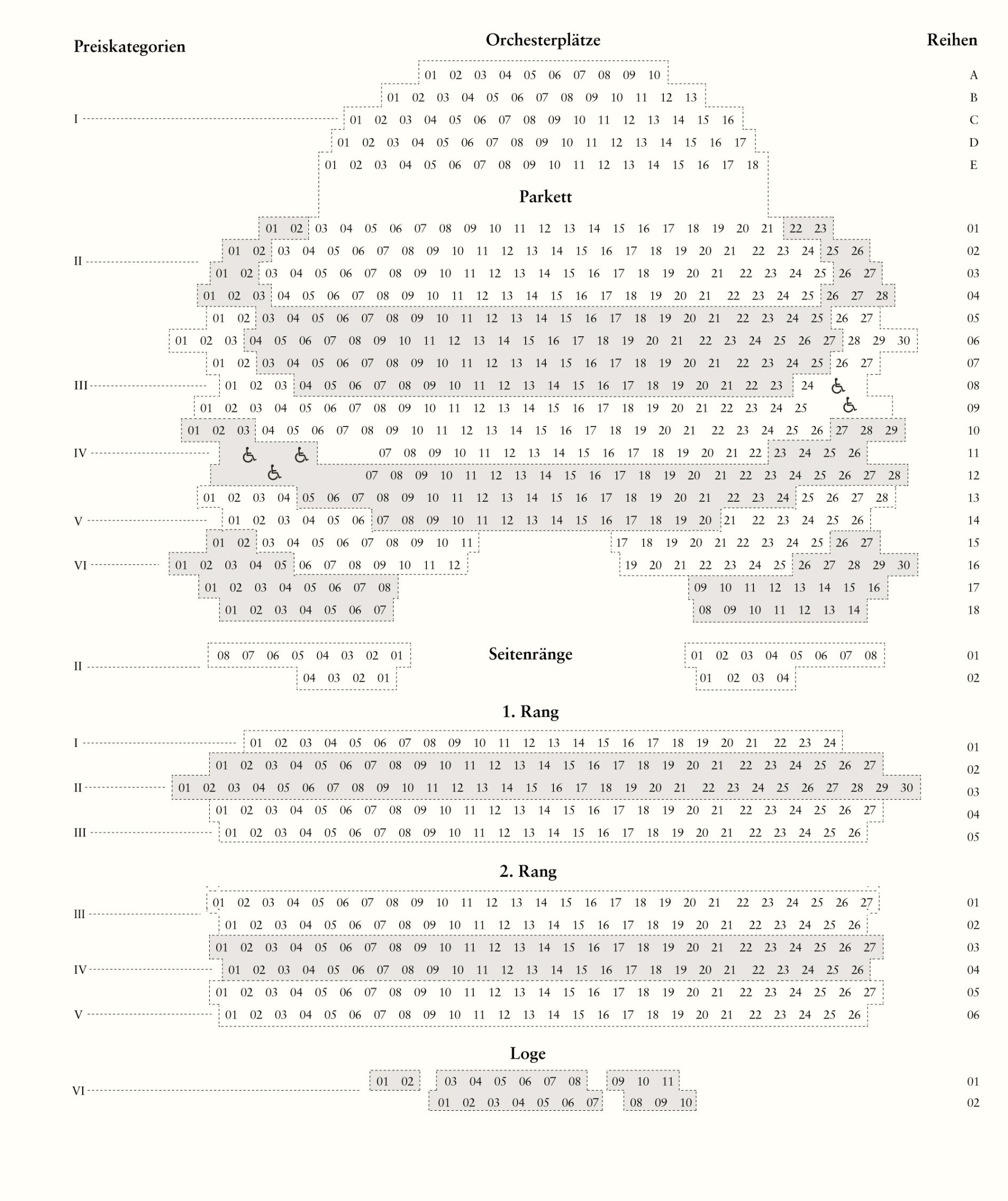 Besuchergruppen ab 10 Personen erhalten einen Rabatt von rund 20% und auf Wunsch mit besonderer Einführung in das Stück. Weitere Informationen finden Sie unter Service für Schulen und Gruppen.