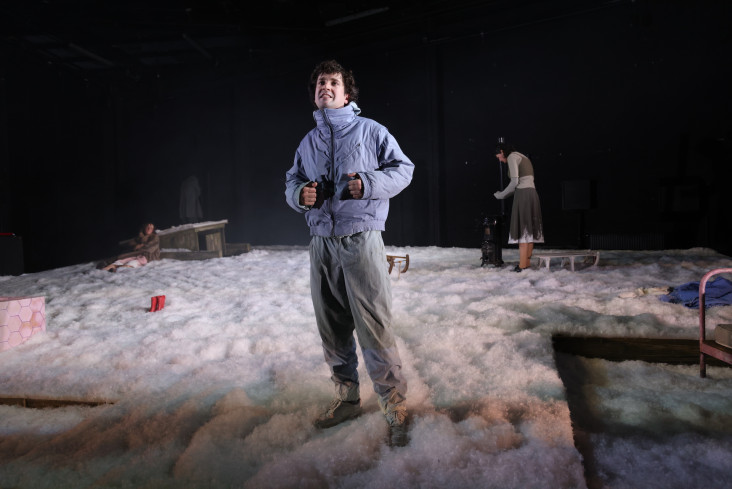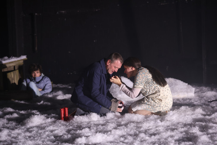 - „Schauspielerisch ist der Abend grandios. Nicht nur wegen der emotionalen Tiefen, die hier ganz besonders Nadine Geyersbach und Guido Gallmann miteinander ausloten, sondern auch, weil das wirklich anspruchsvolle Tempo läuft, sich immer wieder wunderschöne szenische Miniaturen aus dem scheinbar endlosen Trauersprech entwickeln, nur um wieder pulverisiert und folgenlos aufzugehen im Schneegestöber.“ (Jan-Paul Koopmann, taz, 1. März 2024)