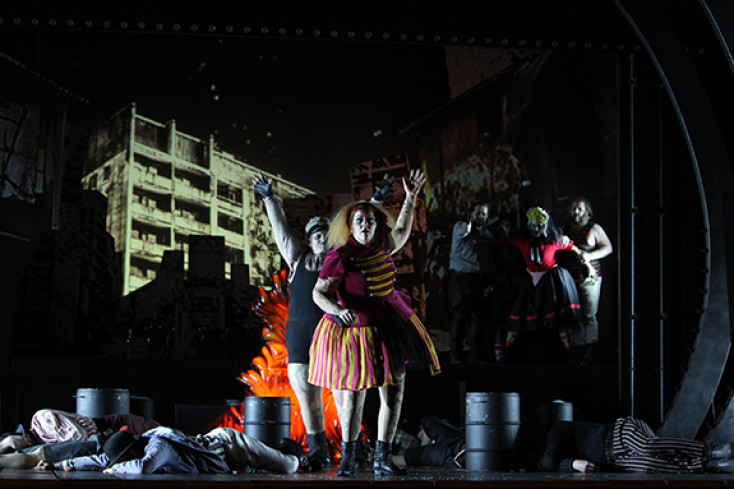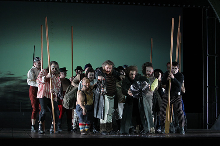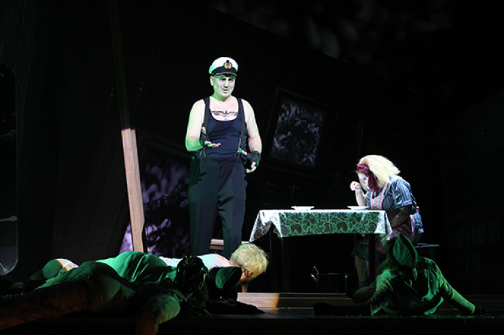 „Ich habe dir gesagt, du sollst nicht wiederkommen. Tot ist tot.“ (Heiner Müller) — Das Verdrängte hat die unangenehme Angewohnheit, sich doch immer mal wieder zu melden. Im „Freischütz“ begegnet es Max in der Wolfsschlucht und im „Fliegenden Holländer“ taucht es alle sieben Jahre in Form eines Geisterschiffes auf den Weltmeeren wieder auf – hier allerdings von der Kaufmannstochter Senta sehnsüchtig erwartet. In beiden Fällen bringt es die vermeintlich heile Welt ins Wanken. Wagner entnahm die Handlung für seine Oper einer Erzählung Heinrich Heines: Ein Kapitän schließt einen Pakt mit dem Teufel, um allen Unmöglichkeiten zum Trotz das Kap der Guten Hoffnung zu umschiffen – Heine greift hier die Sphäre der Schauer- und Jahrmarktsgeschichten auf, was Sebastian Baumgarten in seiner Inszenierung aufgreift: „Seine Sicht auf Wagners frühen Geniestreich gehört zu den intelligenteren Deutungen dieses Werkes seit Jahren. […] Brauner Spuk? Oder Gesellschaftskritik, getarnt als kühne Kolportage? Baumgarten hält die Ebenen so geschickt in der Balance, dass man am Ende, zusammen mit Senta, jäh in einen Abgrund starrt." (Frankfurter Allgemeine Zeitung)