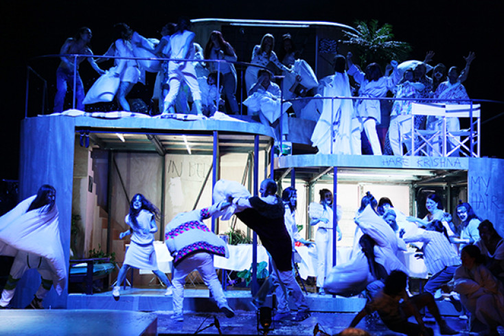 „Die Beste [Idee] ist, dass Regisseur Robert Lehniger die TänzerInnen von Samir Akika zur hippiesken Protagonisten-Crew erklärt. Deren immerwährende Bewegungsparty wälzt sich durch Irene Ips mehrstöckiges Bühnenbild, das eine phantastische Melange von Monte Veritá und All-inclusive-Wellness-Area ist, und lebt von der Extrovertiertheit und Individualität der Bremer TänzerInnen – und das ist ein wirklich reicher Fundus.“