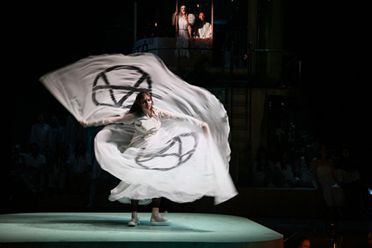 „Für das Mammutprojekt hat sich die Bühne sogar einen Teil des Zuschauerraums einverleibt – zwei Podeste ragen bis in die ersten Reihen. Trotzdem bleibt beim Opener ‚Age of Aquarius‘ kaum ein Zentimeter Luft zwischen Sängern, Schauspielern, Tänzern, Opernchor, Bürgerchor, Band und Orchester. Dicht an dicht gruppieren sie sich vor, um und auf das äußerst gelungene Bühnenbild: Eine zweistöckige Hippievilla, die sich auch mal um die eigene Achse dreht und intime Einblicke gibt. (…) Getanzt und langes Haar geschwenkt wird sowieso immer irgendwo. Einige der Szenen werden zudem auf Leinwände gebeamt: Eine Bilderflut, die Konzentration abverlangt, will man die Videobotschaften nicht verpassen. Diese hat Regisseur Robert Lehniger in Bremen gesammelt und berichten über Protestkultur heute.“
