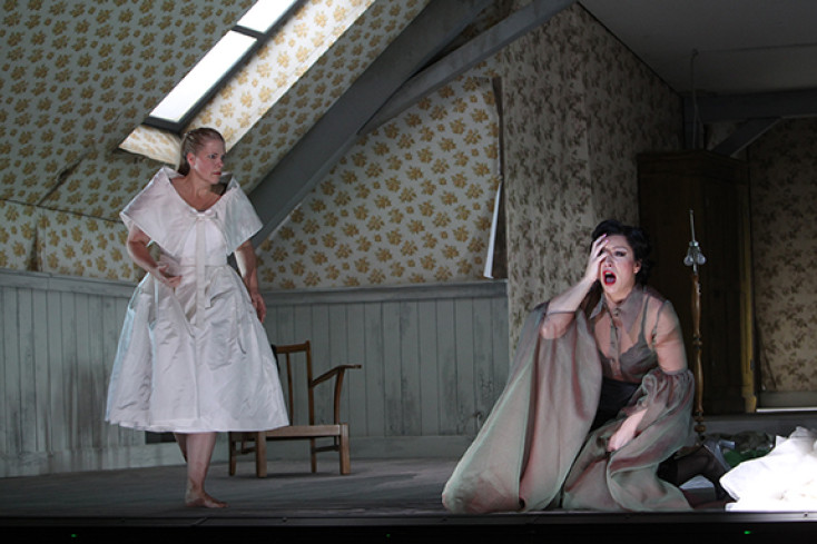 - „[…] [die Inszenierung] hervorragend: Statt eines Waldes hat Duri Bischoff eine sanierungsbedürftige Mansarde mit Schrägdach gezimmert: […] ein Speicher des Verdrängten als vernachlässigter Überbau der höfischen Menschenwelt im Parterre. In diesem Haus hat Regisseurin Anna-Sophie Mahler ihre komplette, weitgehend entzauberte Version des Zaubermärchens von der Nixe untergebracht […]Mahler [gelingt es] dabei, sich von Martin Kušejs epochaler, komplett desillusionierter Münchner Rusalka-Inszenierung von 2010 zu unterscheiden, indem sie das unmetaphysisch Unheimliche des Stoffes freilegt: Dank Bildern, die wirken, als wären sie direkt aus dem Horrorfilm „Ring“ auf diese Bühne transponiert, dank der drei Nymphen, die aus den Wellen der Tapete auf die Bühne schweben, Schwestern oder Klone der Titelfigur. Und vor allem dank Claudio Otelli, der als Wassermann seine Töchter nicht ziehen lassen will […]den SängerInnen, [lässt] Mahlers nüchterner Regie-Ansatz alle Möglichkeiten […], sich durch ihre Stimme als Charaktere zu behaupten: Patricia Andress ist eine perfekt-warmherzige Rusalka, Nadine Lehner, als ihre von Geraldine Arnold in sexy-Schreirot gekleidete Widersacherin forciert stark den aggressiven Schneid ihrer Partie, und eigentümlich ist der große Zauber der Kontra-Altistin Romina Boscolo: Als Hexe Jezibaba ermöglicht sie die Transgression zwischen Menschen- und Nixen-Sphäre, in ihrer Stimme verschmelzen Männer- und Frauenfach. Alles überstrahlt allerdings der Prinz: Wer Luis Olivares Sandovals dahingeschmolzenen Liebestod am Ende ohne Träne hören kann, hat eben keine Ohren. Oder keinen Verstand.“ (Benno Schirrmeister, taz 18./19.11.2017)
