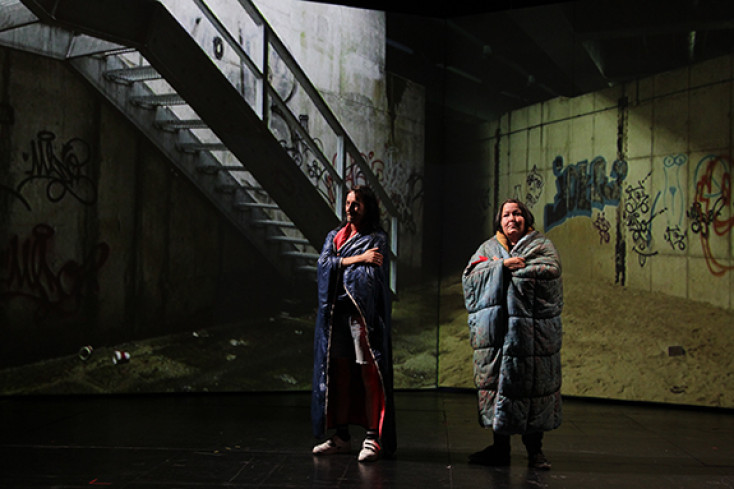 Was sind die Überlebensstrategien von Menschen auf der Straße? Wie richten sie ihre Bühnen da draußen ein, wie setzen sie sich in Szene, welche Texte sagen sie auf, um uns auf sie aufmerksam zu machen? Gemeinsam mit der argentinischen Regisseurin Lola Arias erzählen der Obdachlose Rony und seine Frau Anja, Bugs und sein Hund Kumpel, Bea, die Ex-Prostituierte, Boiko, der Straßenmusiker und die Chakarov Brüder, seine Begleiter am Schlagzeug und an der Gitarre etwas andere Geschichten vom Leben und vom Theater. Und die Schauspieler Matthieu Svetchine und Claudius Franz assistieren ihnen dabei: sie soufflieren, wenn nötig, oder übersetzen Russisch, gebrochenes Englisch oder auch kaum verständliches Deutsch. Vor allem aber werden sie von ihnen lernen – über die Kunst, aus Geschichten Geld zu machen.