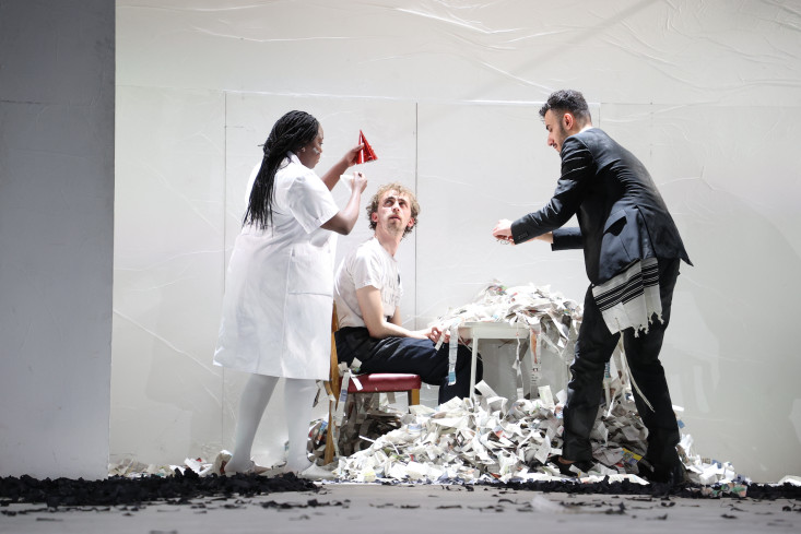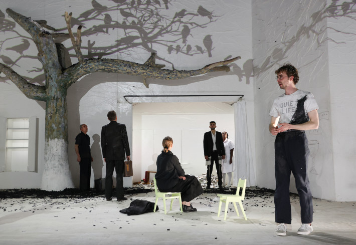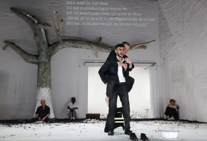 „‚Vögel‘ heißt das von 14 deutschsprachigen Bühnen in dieser Saison gespielte Stück Wajdi Mouawads, das die gefiederten auch als utopische Wesen behauptet. Vom Quantenvogel geht die Rede, der wie die nicht fix definierbaren Energieteilchen an zwei Orten gleichzeitig sein könnte, etwa dies- und jenseits der israelisch-arabischen Mauer. Auch das persische Märchen vom Amphibienvogel wird zitiert. Ihm wachsen Kiemen, damit er unter Fischen leben kann. Diesen sehnsüchtigen wie verzweifelten Befriedungsaufruf arbeiten die Regisseure Stefan Bachmann (Schauspiel Köln), Katharina Ramser (Deutsches Theater Göttingen) und Alize Zandwijk (Theater Bremen) in funkelnder Klarheit heraus. […] dieses Stück konventionellen Erzähltheaters […] ist aber derart wirkungssicher geschrieben – Einführung, Verschärfung, Stillstand und katastrophale Lösung der Konflikte –, dass die Aufführungen nie kitschig werden in ihrer Friedens-, Verständnis-, Liebessehnsucht. Sondern auf allen Ebenen funktionieren.“ (Jens Fischer, Die deutsche Bühne in der Rubrik „Gegenüberstellung“, November 2019)