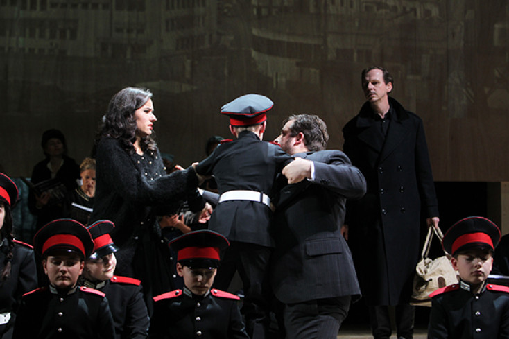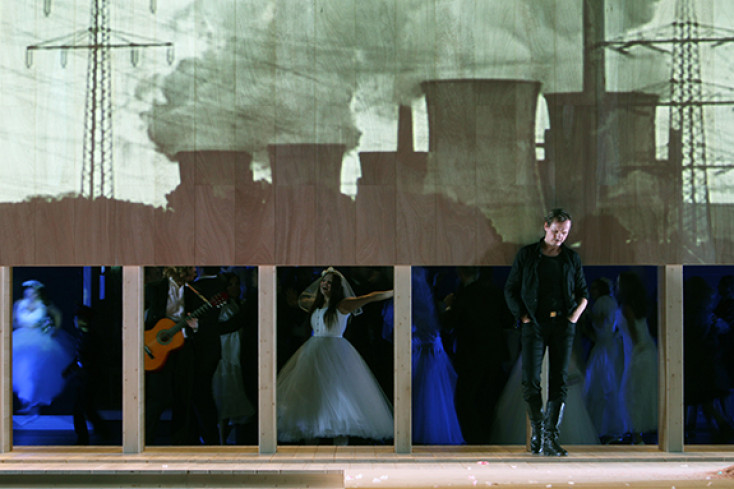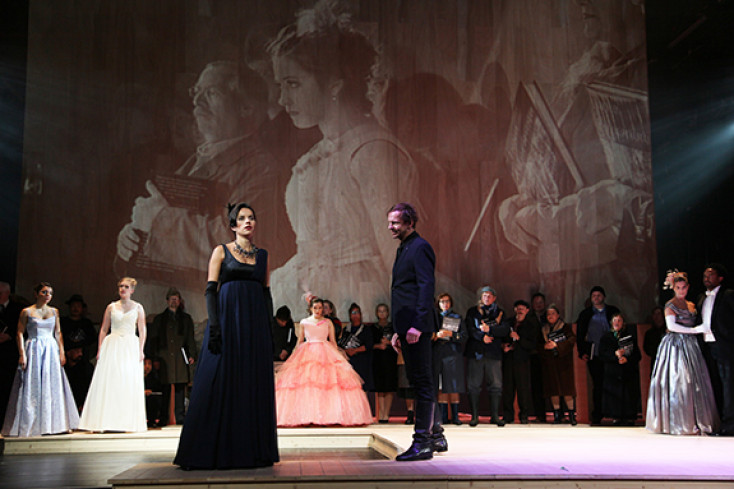 Der Schriftsteller, Regisseur und Stuttgarter Schauspielintendant Armin Petras hat Tolstois Roman 2008 für die Bühne bearbeitet und in eine Sprache fast lakonischer Beiläufigkeit gefasst, die eher episch denn dramatisch, dafür trotz ihrer draufschauenden Erzählperspektive hochgradig berührend ist. Und für das Theater Bremen wiederum haben Thomas Kürstner und Sebastian Vogel „Drei Atmosphären“ zu dieser Bühnenfassung komponiert: Kein Opernwerk im traditionellen Sinne, sondern ein Musiktheatermaterial für Orchester, Sänger- und SchauspielerInnen, mit dem die Geschichte vom Aufstieg und Ende einer großen Liebe erzählt wird, die nicht Wirklichkeit werden kann und doch versucht sein muss.