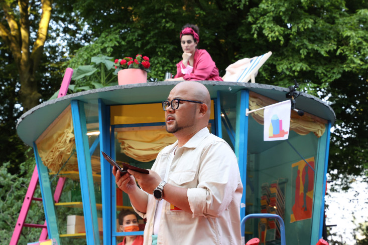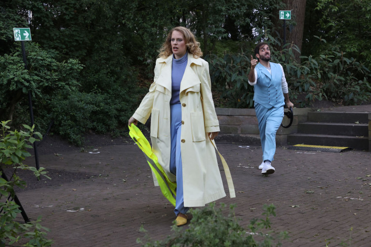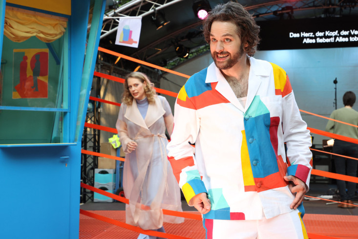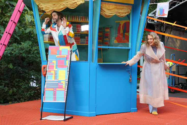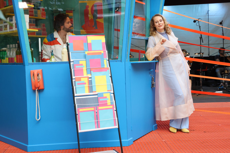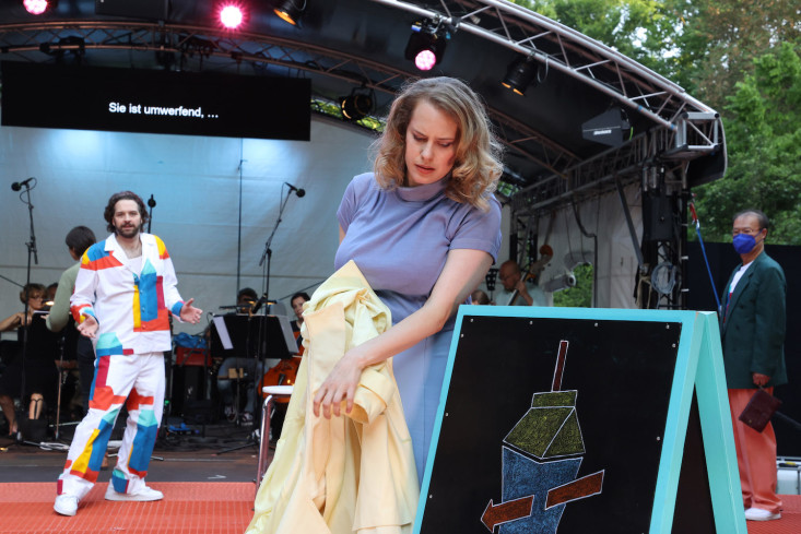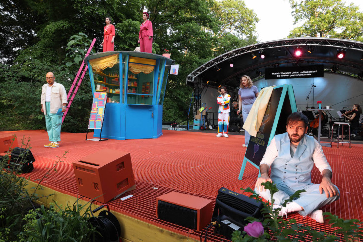 Fast folgerichtig steht eine weibliche Dirigentin am Pult. Chordirektorin Alice Meregaglia leitet ein elf-köpfiges Ensemble der Bremer Philharmoniker. Der junge Regisseur Josef Zschornack (zuletzt szenische Einrichtung bei „Mit Abstand das Schönste“) verortet die Story an den Ort, an dem wir uns befinden. Nur so viel sei verraten: Herrscher Mustafà ist jetzt Herr über einen Kiosk, an dem sich Sommergäste, Paare und Passanten einfinden, die sich aneinander die Zähne ausbeißen, während die Sonne langsam untergeht.