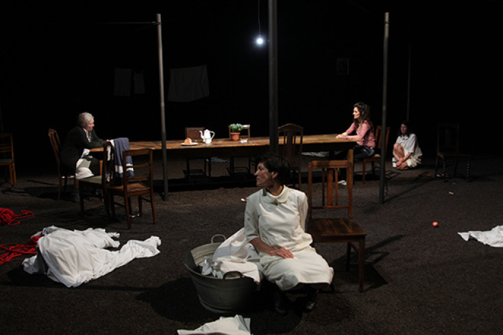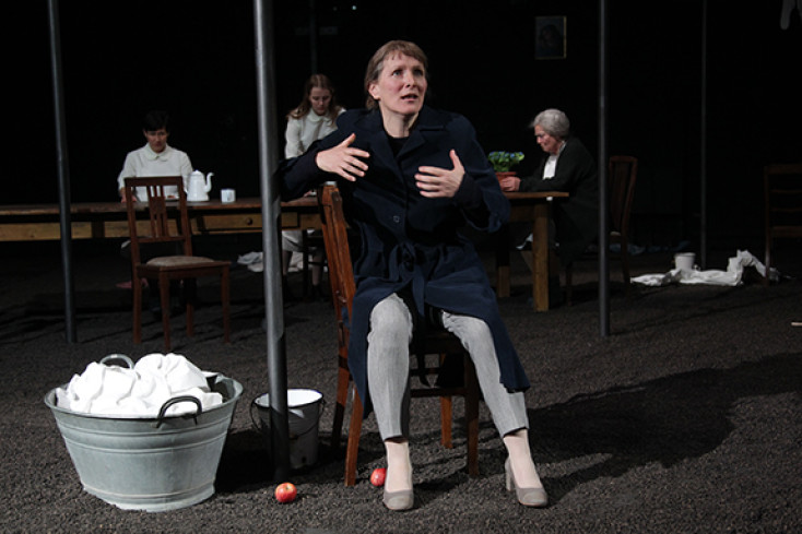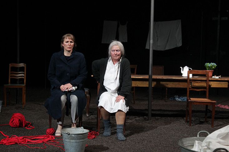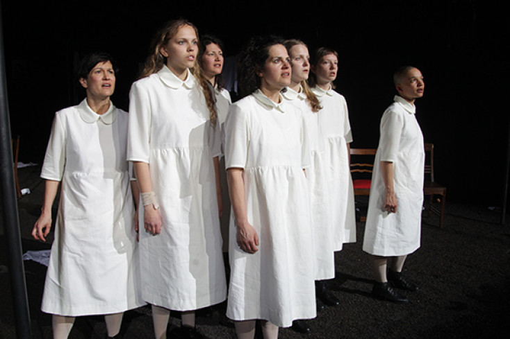 „Wir sind in die Welt gevögelt und können nicht fliegen.“ (Werner Schwab) — Kurz vor Ende der Naziherrschaft belauscht eine Frau das Telefonat eines Soldaten, der mit dem Gedanken liebäugelt, zu desertieren. Wenig später wird er vom Militärgericht verurteilt und getötet. Nach Kriegsende wird die Denunziantin verurteilt: zwölf Jahre Kerkerhaft. Doch die Schuld bleibt. Und sie wird weitergegeben, prägt Generation um Generation. Die Alte, die Mittlere, die Junge – so bezeichnet der Autor seine Figuren. Drei Frauen, drei Generationen, die sich – getrieben von einem antiken Frauenchor – abarbeiten an Fragen von Schuld und Sühne, von Verantwortung, vom Leben als Kind und Kindeskind von TäterInnen. So groß die Lust nach Verdrängung und die Sehnsucht den zu lieben, den man hassen möchte, auch sein mag: die Vergangenheit ragt unerbittlich in die Gegenwart hinein. Für sein durchrhythmisiertes, in kunstvoll wuchtige Wortkaskaden gekleidetes Stück für sieben starke Frauen, erhielt Ewald Palmetshofer 2015 den Mülheimer Dramatikerpreis. Nina Mattenklotz setzt sich nachhaltig mit zeitgenössischer Dramatik auseinander. In der vergangenen Spielzeit inszenierte sie die Uraufführung „Ännie“ von Thomas Melle.
