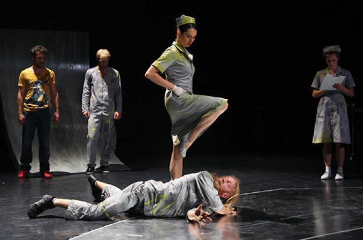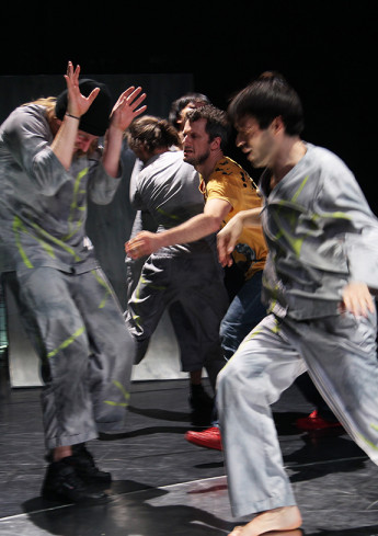 „Ich lebe im Irrenhaus / Und weiß nicht warum / Viele Menschen leben nicht im Irrenhaus / Und wissen auch nicht warum.“ (Ali Jalaly) — Mit seinem Roman „Einer flog über das Kuckucksnest“ verarbeitete der Schriftsteller Ken Kesey Anfang der 1960er-Jahre seine Erlebnisse als Aushilfspfleger und Teilnehmer eines von der CIA betriebenen psychiatrischen Forschungsprojekts zu einer Parabel über die Mechanismen totalitärer Gesellschaften. Die Geschichte des simulierenden Draufgängers McMurphy, der sich einer drohenden Gefängnisstrafe durch freiwillige Einlieferung in die Psychiatrie entzieht und dort mit der so komischen wie erbarmungslosen Realität eines Systems von Überwachung und Strafe konfrontiert wird, traf den Zeitgeist amerikanischer Gegenkultur zwischen Vietnam und Watergate und erlangte spätestens mit der Verfilmung durch Miloš Forman Weltruhm. Mit Tänzern des Bochumer Street Dance-Labels Renegade und seiner eigenen Kompanie transportiert Samir Akika den antiautoritären Gestus des Stoffes in eine absurd-tragische Choreografie zwischen Revolte und System.