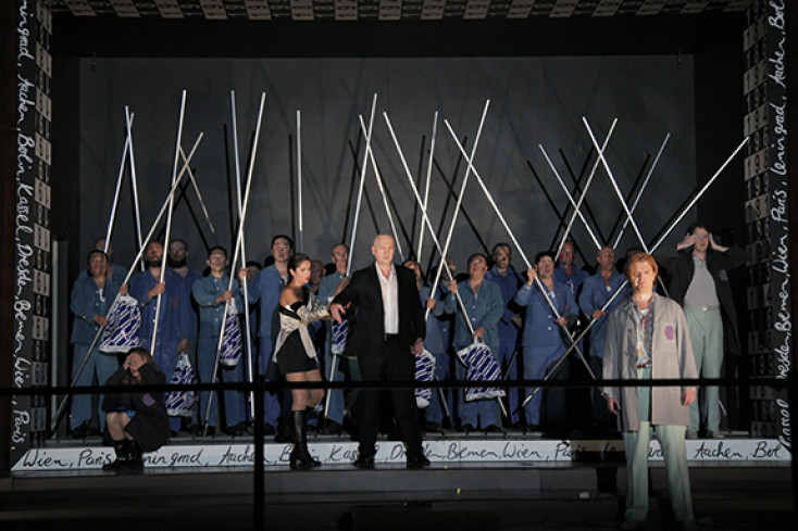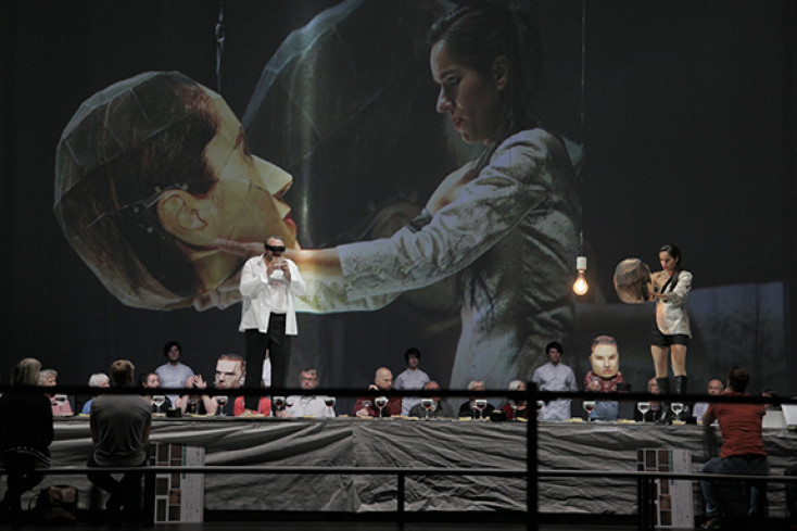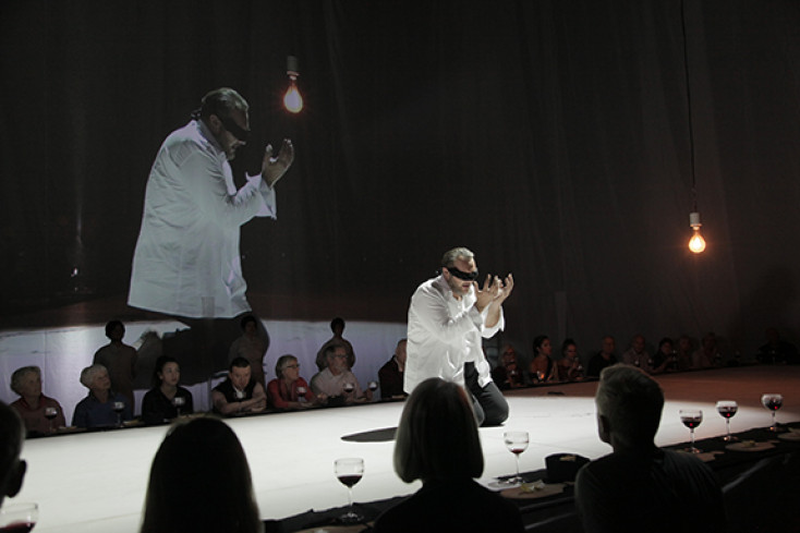 Als Fanal für die Einmischung und Teilhabe an politischen Prozessen ist die Oper "Fidelio" auch heute noch eine Aufforderung zur Aktivität, zur Emanzipation, zum gesellschaftlichen Seitenwechsel. Daher möchten wir im zweiten Teil der Oper die konventionelle Guckkasten-Situation aufbrechen und einen Teil unseres Publikums auf die Bühne bitten. 60 Zuschauerinnen und Zuschauer sitzen an einem großen Tisch und werden mit Theaterwein, Brot, Öl und Salz verköstigt. Keine Angst: Als Teil der Tischgesellschaft müssen Sie nicht mitspielen. Es könnte allerdings sein, dass einige gebeten werden, ein Schild hochzuhalten oder eine Maske aufzusetzen. In jedem Fall sitzen Sie auf der anderen Seite und sind mittendrin, direkt neben den Sängerinnen und Sängern. Wenn Sie eine/r dieser 60 ZuschauerInnen sein möchten, wenden Sie sich bitte an die Theaterkasse. Und halten Sie sich ran: First come, first serve!