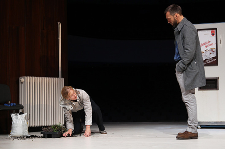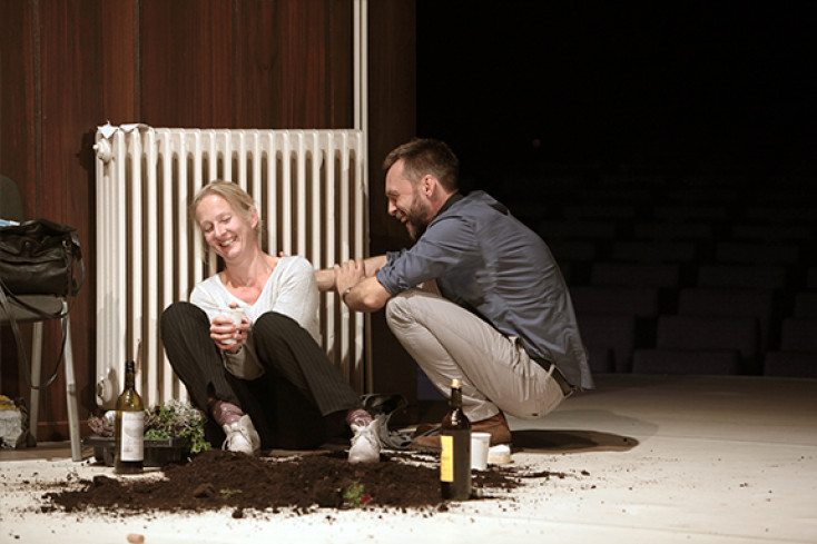 „Der schlichte Vorgang, aufzuwachen, die Zeitung hereinzuholen und sich zum Frühstück hinzusetzen wurde zur grausamen Pantomime eines in der unüberwindlichen Abwesenheit unseres Sohnes vollzogenen Alltags.“ (Siri Hustvedt) — „Er“ ist einfach weggegangen. An einem Silvesterabend um 19:10 Uhr. Und „Sie“ hat ihn nicht aufgehalten. Zehn Jahre Funkstille. Nun das Wiedersehen. In einer Friedhofshalle. Das Erdreich scheint vergiftet. Das Grab muss verlegt werden. Das Grab des gemeinsamen Sohnes. „Sie“ und „Er“ brechen ihr Schweigen und reden – zum allerersten Mal – über das Unfassbare, die Trauer, die Hilflosigkeit, das Leben danach. Sie lachen, streiten, werden eins in der Erinnerung und entlassen sich wieder in ihre unterschiedlichen Möglichkeiten jemals wieder Glück zu empfinden. Es ist keine Abrechnung, die Lot Vekemans mit ihrem 2009 verfassten und vielfach nachgespielten Stück geschrieben hat, sondern eine intensive Momentaufnahme eines Paares, dem das schlimmstmögliche Unglück widerfahren ist: Der Verlust des einzigen Kindes.